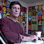 It has now been a year since Krepfle sold all of his belongings to come to Berlin. In that time he has found both a home and inspiration. The walls of his studio are lined with the work that he has created here: colorful, cereal box-sized images of contemporary news events interpreted through his unique lens. World figures like North Korea's Kim Jong Il and Saddam Hussein are juxtaposed with images dealing with globalization, consumerism and the rise of radical fundamentalism of all flavors.